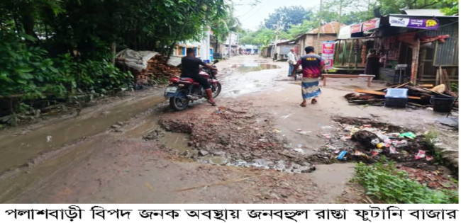 পলাশবাড়ী বিপদ জনক অবস্থায় জনবহুল রাস্তা ফুটানি বাজার