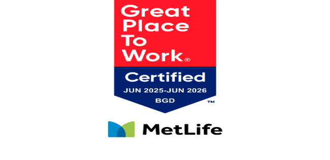 না দ্বিতীয়বারের মত ‘গ্রেট প্লেস টু ওয়ার্ক’ স্বীকৃতি অর্জন করল মেটলাইফ বাংলাদেশ