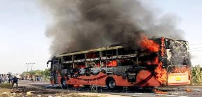 ভারতে চলন্ত বাসে আগুন,পুড়ে প্রাণ গেল ১৯ যাত্রীর