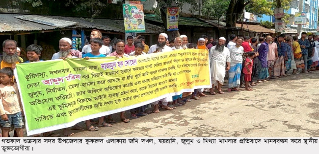 বগুড়া সদরে হয়রানি ও মিথ্যা মামলার প্রতিবাদে মানববন্ধন
